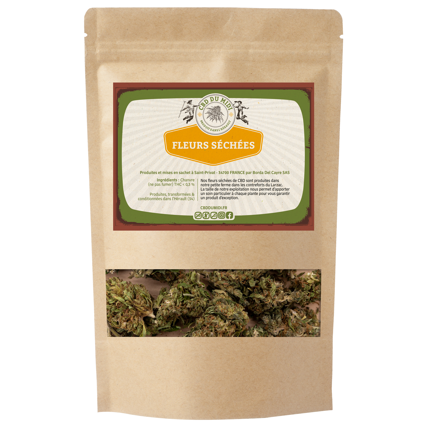 Fleurs de CBD exclusivement produites dans notre ferme située dans l'Hérault. Agriculture respectueuse de l'environnement : culture sur sol vivant sans utilisation de produits.